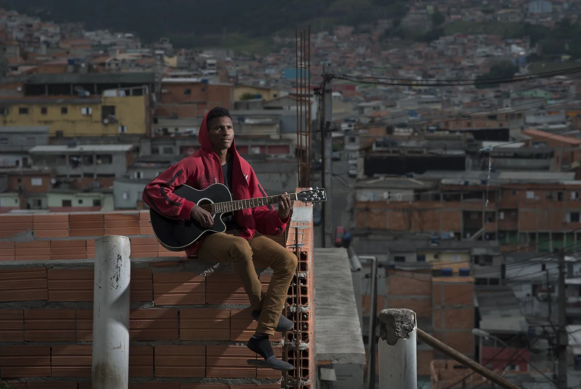 Matheus Gadelha, a 19-year old unemployed resident of Santo Andre favela, Sao Paulo, Brazil, poses for the camera as he practices a guitar by his home, on August 12, 2016. Matheus dreams to become a professional musician. The teen has never met his father and says “I’m very happy without him, my mother is everything to me.”
